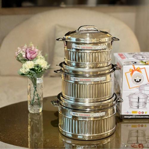 ✨ حافظ على حرارة الطعام وأناقة التقديم مع هذا الطقم المميز من الحافظات الهندية المصنوعة من ستانلس ستيل عالي الجودة.