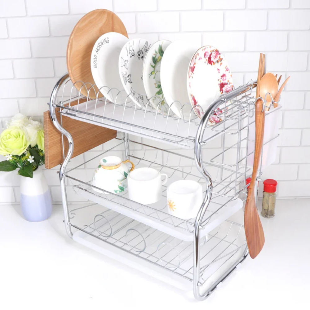 حامل أطباق مكون من ثلاثة أرفف فضي