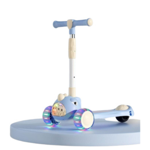 سكوتر ثلاثي العجلات (3 عجلات) يتميز بتصميم لطيف ولون أزرق جذاب.