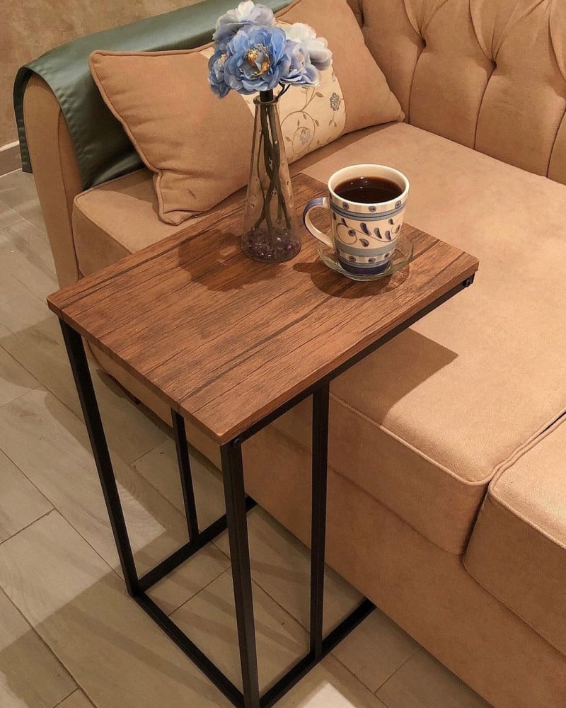 طاولة الخدمة المفردة ذات القاعدة الحديدية السوداء والسطح الخشبي. تتميز هذه الطاولة بتصميم عصري يجمع بين البساطة والمتانة، مما يجعلها مثالية للاستخدام في أي غرفة سواء كانت غرفة المعيشة أو المكتب. توفر لك الطاولة مساحة واسعة لراحة إضافية مع لمسة من الجمال الطبيعي بفضل سطحها الخشبي الأنيق.