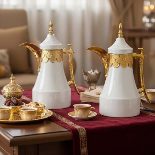 طقم ترامس البيرق ابيض فضي وابيض ذهبي