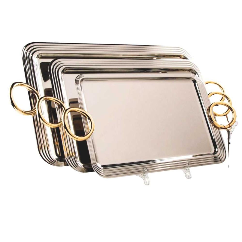 طقم صواني التقديم المكون من 3 قطع يأتي بتصميم عصري وأنيق يضيف لمسة فاخرة لأي مناسبة. يتميز بالجودة العالية مصنوع من مواد مقاومة للصدأ ، مما يضمن استخدامًا طويل الأمد. كما أنه عملي وسهل التنظيف، حيث يمكن تنظيفه بسهولة بعد كل استخدام. هذا الطقم مثالي للتقديم في المناسبات الخاصة والاستخدام اليومي