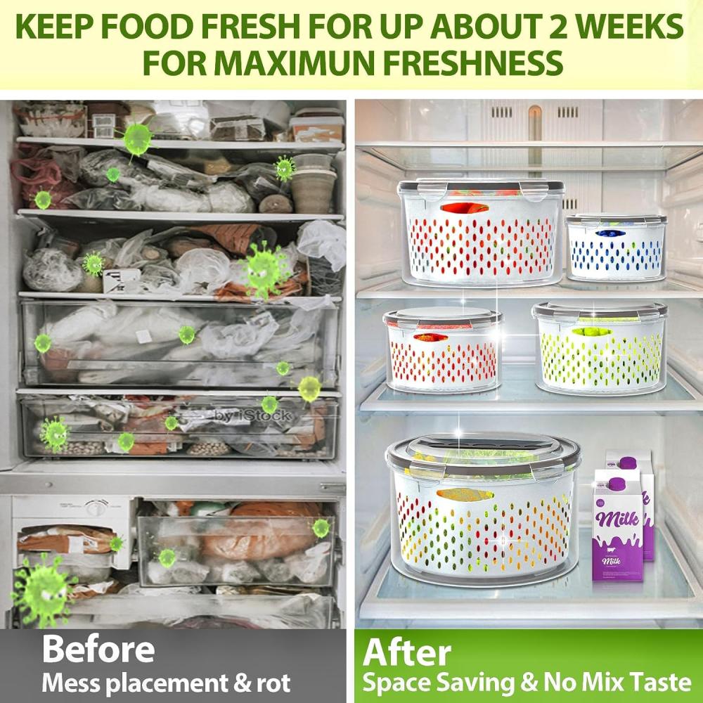 حاويات تخزين الفاكهة قابلة للتكديس ويمكن وضعها بسهولة في الثلاجة أو الفريزر أو الخزانة. حافظ على ثلاجتك عديمة الرائحة ونظيفة ومنظمة.