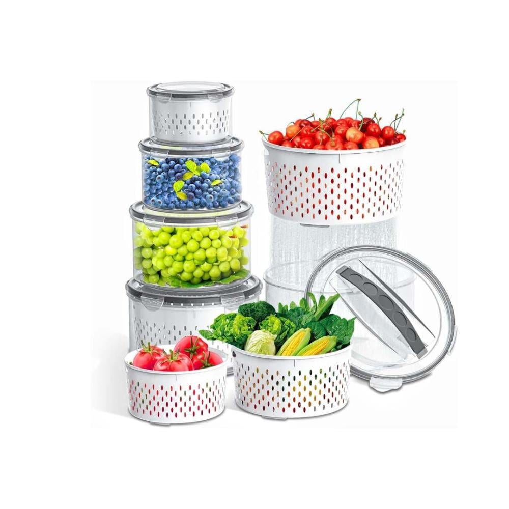تأتي حاوية تخزين الثلاجة الطازجة مع سلة قابلة للفلترة. لغسل الفواكه وتصريفها والحفاظ على الطعام بعيدًا عن التنقيط. عند تفكيكها للاستخدام،