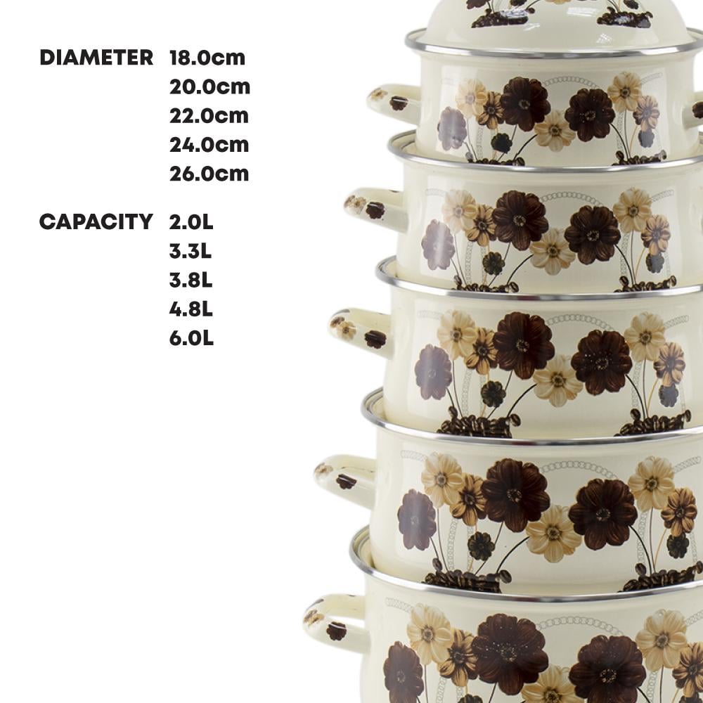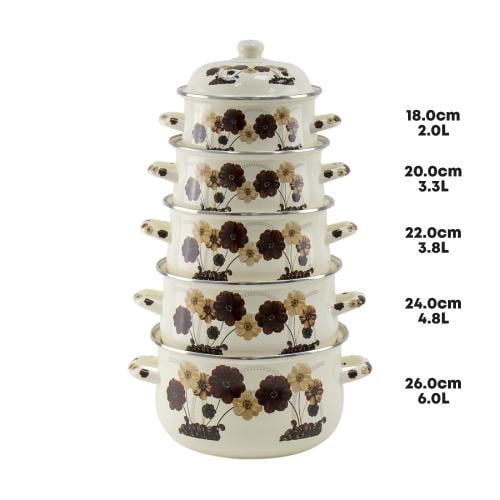 - 5 أحجام مختلفة (18 / 20 / 22 / 24 / 26 سم) يعني يغطي كل احتياجك من الطبخ اليومي للطبخات الكبيرة