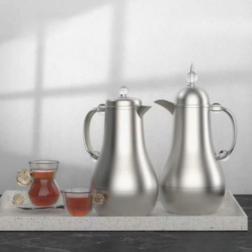 طم ترامس كروم مطفي استيل 1+1 لتر شاي وقهوة