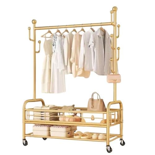 علاقة ملابس مع أرفف تخزين عملية وتصميم عصري ذهبي