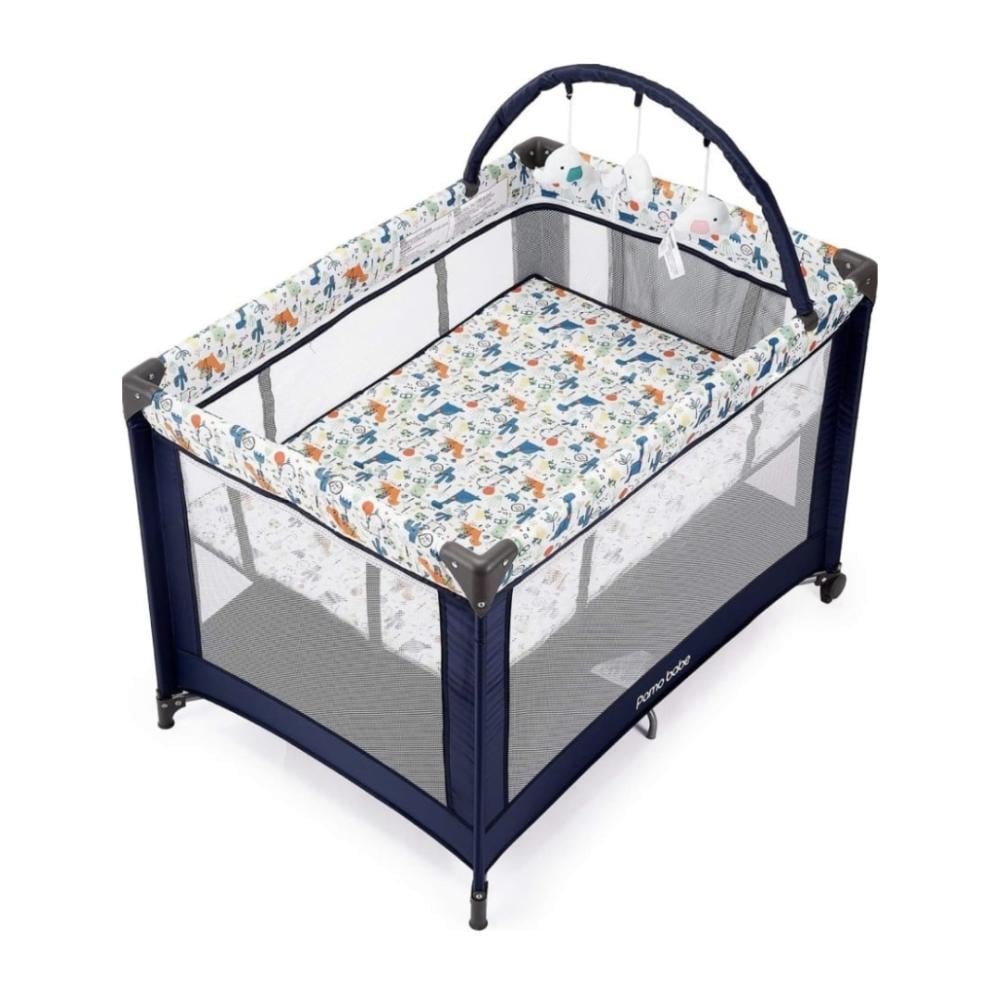 سرير ومحبس للاطفال قابل للطي ازرق غامق