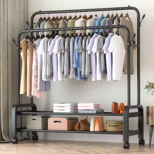 حافظ على تنظيم ملابسك وأغراضك مع علاقة ملابس معدنية بعجلات لون اسود من قسم علاقات ملابس من متجر الأخضر. لا تفوت الفرصة لتحصل على علاقة عملية وأنيقة.